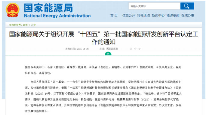 國家能源局關(guān)于組織開展“十四五”第一批國家能源研發(fā)創(chuàng)新平臺認定工作的通知