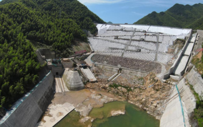 長龍山抽水蓄能電站下水庫進出水口主體混凝土澆筑完成。