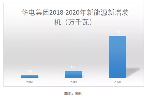從去年開(kāi)始,華電在新能源上開(kāi)始迅速發(fā)力,當(dāng)年新增了692萬(wàn)千瓦裝機(jī),是上一年的5倍,累計(jì)裝機(jī)達(dá)到2436萬(wàn)千瓦。