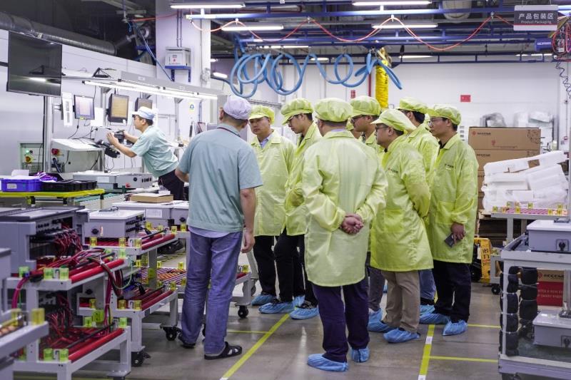 根據(jù)當(dāng)天行程安排,調(diào)研團(tuán)專(zhuān)家在孔沫晗總監(jiān)的陪同指引下,一同參觀(guān)了固德威展廳、工廠(chǎng)車(chē)間,并向?qū)<覀冊(cè)敿?xì)介紹了公司的發(fā)展經(jīng)營(yíng)情況。