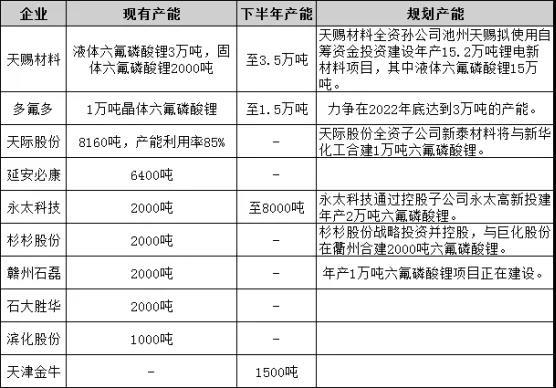 目前,六氟磷酸鋰的生產(chǎn)進(jìn)入壁壘較高,即使目前行業(yè)開工率、產(chǎn)量上行明顯,但主要的增量還是集中在龍頭企業(yè)。國內(nèi)產(chǎn)能排名靠前的企業(yè)至今年上半年年產(chǎn)能約6.4萬噸(含未完全釋放產(chǎn)能),從領(lǐng)域看需用于數(shù)碼、動(dòng)力、儲(chǔ)能、小動(dòng)力等多個(gè)鋰電池應(yīng)用細(xì)分市場;從地域分又包含國內(nèi)及出口。