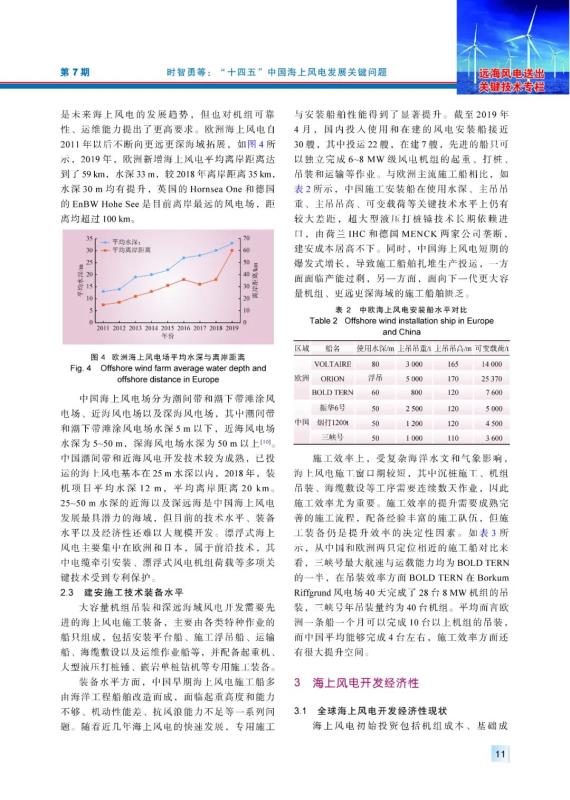 結(jié)論:本文結(jié)合“十三五”以及歐洲海上風(fēng)電開(kāi)發(fā)與運(yùn)行經(jīng)驗(yàn),對(duì)“十四五”中國(guó)海上風(fēng)電技術(shù)裝備能力、經(jīng)濟(jì)性以及開(kāi)發(fā)布局等問(wèn)題進(jìn)行探討。結(jié)果顯示,機(jī)組單機(jī)功率、離岸距離與水深、建安施工裝備與施工效率是衡量海上風(fēng)電技術(shù)的重要標(biāo)志。中國(guó)與歐洲海上風(fēng)電主要國(guó)家還存在一定差距,裝備制造能力可滿足每年300萬(wàn)~500萬(wàn)kW海上風(fēng)電開(kāi)發(fā)需要;度電成本難以媲美歐洲主要國(guó)家,沿海各省雖然資源成本有所差異,但開(kāi)發(fā)效益趨于一致,“十四五”末,福建有望達(dá)到平價(jià)上網(wǎng)水平,其他省份在風(fēng)資源較好、造價(jià)偏低的局部海域可實(shí)現(xiàn)平價(jià),但難以達(dá)到總體平價(jià)上網(wǎng)水平;受資源與省級(jí)規(guī)劃、供應(yīng)鏈產(chǎn)能、施工與吊裝能力、消納能力等約束,“十四五”末,中國(guó)海上風(fēng)電累計(jì)裝機(jī)容量將達(dá)到2500 ~ 3500萬(wàn)kW。最后本文結(jié)合中國(guó)海上風(fēng)電發(fā)展基本情況,分別從資源評(píng)估、機(jī)組選型、安全運(yùn)行以及政策機(jī)制4個(gè)方面提出“十四五”期間促進(jìn)海上風(fēng)電平穩(wěn)有序發(fā)展的基本舉措。