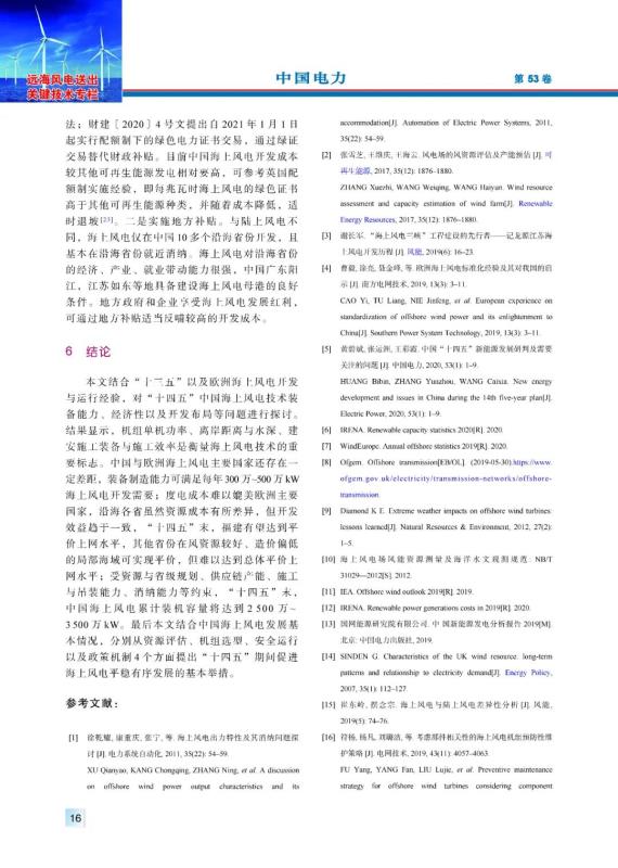 時(shí)智勇, 王彩霞, 李瓊慧. “十四五”中國(guó)海上風(fēng)電發(fā)展關(guān)鍵問(wèn)題[J]. 中國(guó)電力, 2020, 53(7): 8-17.