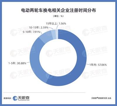 天眼查產(chǎn)業(yè)大數(shù)據(jù)顯示,從2016年開始,我國電動兩輪車換電相關(guān)企業(yè)的注冊數(shù)量快速上漲,57%的相關(guān)企業(yè)成立于1年內(nèi),另有31%的相關(guān)企業(yè)成立于1-5年內(nèi),僅2020年就新增了1400家相關(guān)企業(yè)。