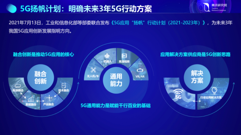 2021年7月13日,工信部等十部門印發(fā)了《5G應(yīng)用“揚(yáng)帆”行動(dòng)計(jì)劃(2021-2023年)》,把5G融合應(yīng)用提高到戰(zhàn)略規(guī)劃高度。