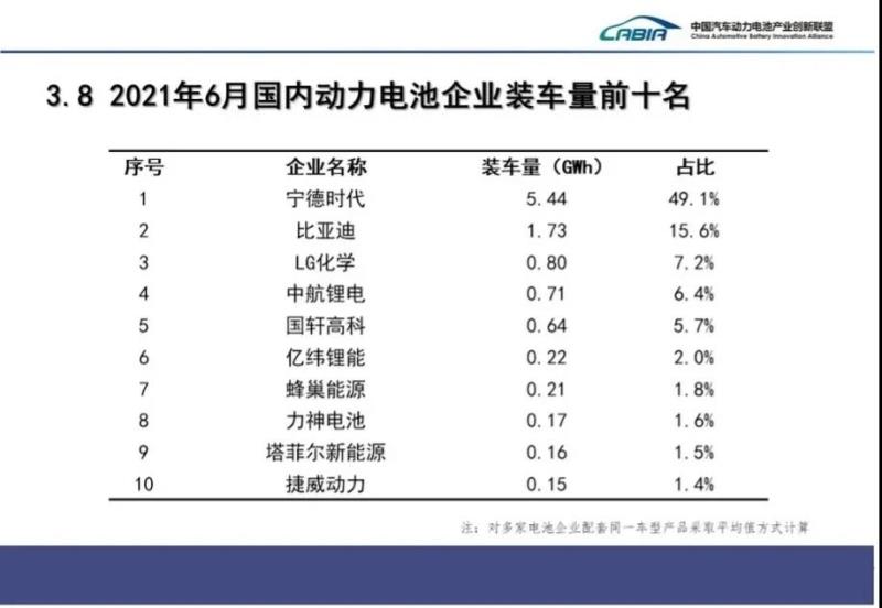 據(jù)中國(guó)汽車動(dòng)力電池產(chǎn)業(yè)創(chuàng)新聯(lián)盟最新數(shù)據(jù)顯示,2021年6月,蜂巢能源以0.21GWh的裝機(jī)量位居第7;2021年1~6月,蜂巢能源以0.84GWh的裝機(jī)量位居第7, 在國(guó)內(nèi)裝機(jī)量TOP10陣營(yíng)呈持續(xù)穩(wěn)步上升態(tài)勢(shì)。
