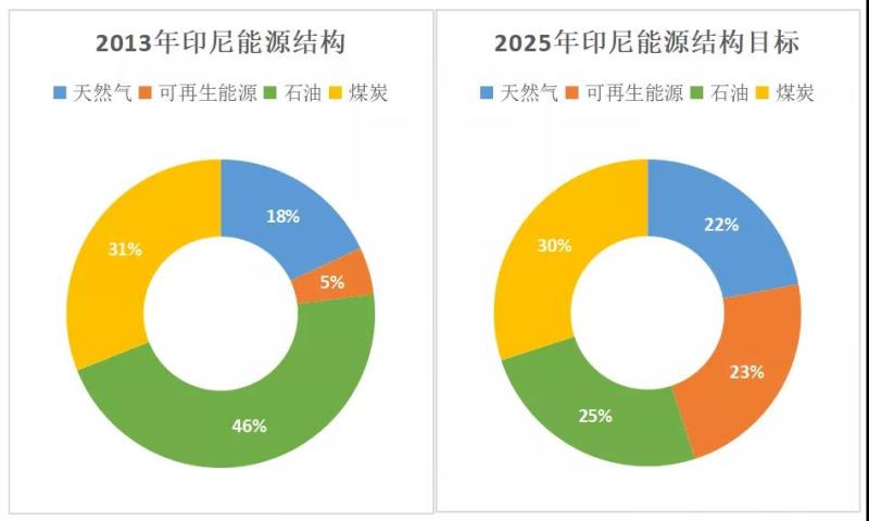 圖:2013年與2025年(目標(biāo))印尼能源結(jié)構(gòu)對(duì)比圖