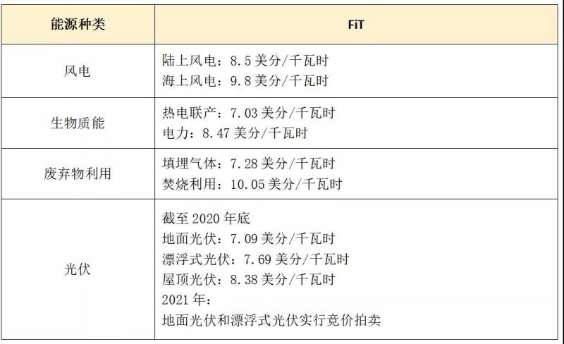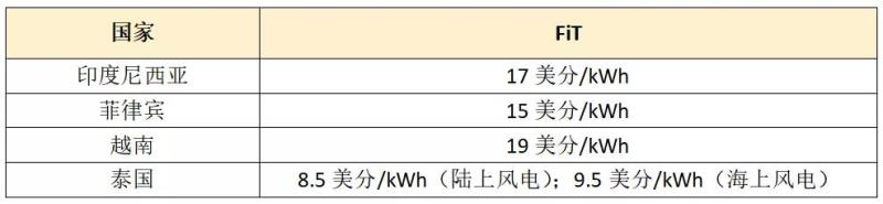 表:越南主要可再生能源的上網(wǎng)電價(jià)