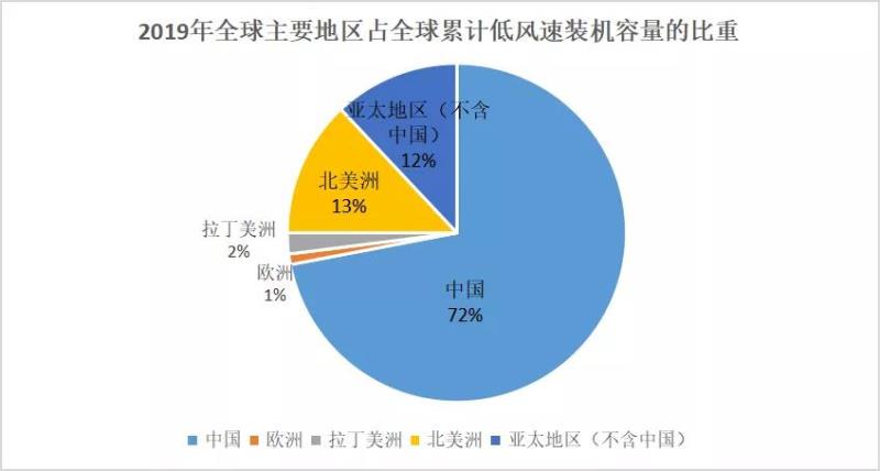 圖:2019年全球主要地區(qū)占全球累計(jì)低風(fēng)速裝機(jī)容量的比重