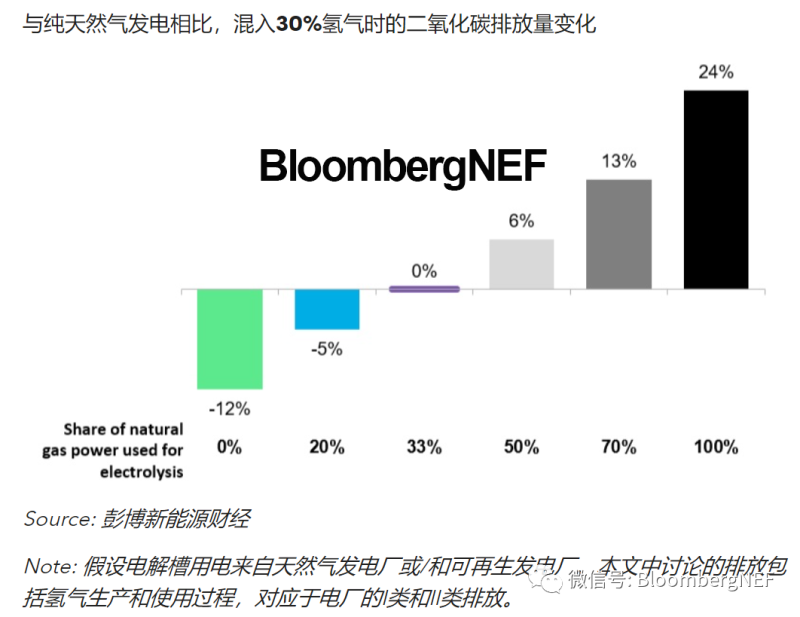 燃燒70%甲烷和30%完全由天然氣供電給電解設(shè)備得到的氫氣增加的碳排放