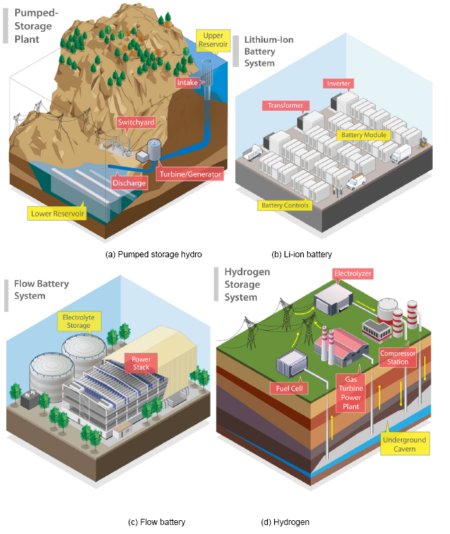 與傳統(tǒng)發(fā)電設(shè)施的投資相比,儲(chǔ)能系統(tǒng)主要的區(qū)別在于有兩個(gè)組成部分:功率(裝機(jī)容量)和能量(儲(chǔ)能容量)。由于電能幾乎總是以另一種形式存儲(chǔ)(例如,水的勢(shì)能、化學(xué)能或動(dòng)能),因此需要電力轉(zhuǎn)換設(shè)備將這些能量轉(zhuǎn)換為另一種形式,然后使用水泵、電力電子設(shè)備或其他技術(shù)再次轉(zhuǎn)換。這一過程代表了儲(chǔ)能設(shè)備的功率組件和相關(guān)成本。