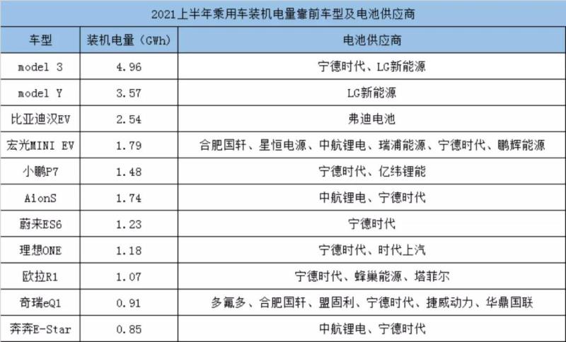 其中,上半年裝機電量超1 GWh的乘用車車型包括model 3、model Y、比亞迪漢 EV、宏光MINI EV、蔚來ES6、AionS、小鵬P7、理想ONE、歐拉R1等,成為當(dāng)前新能源乘用車市場的銷售主力。