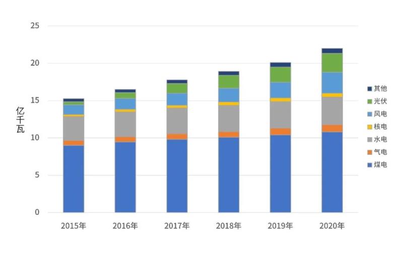 ▲圖1 2015—2020年我國(guó)各類電源裝機(jī)情況