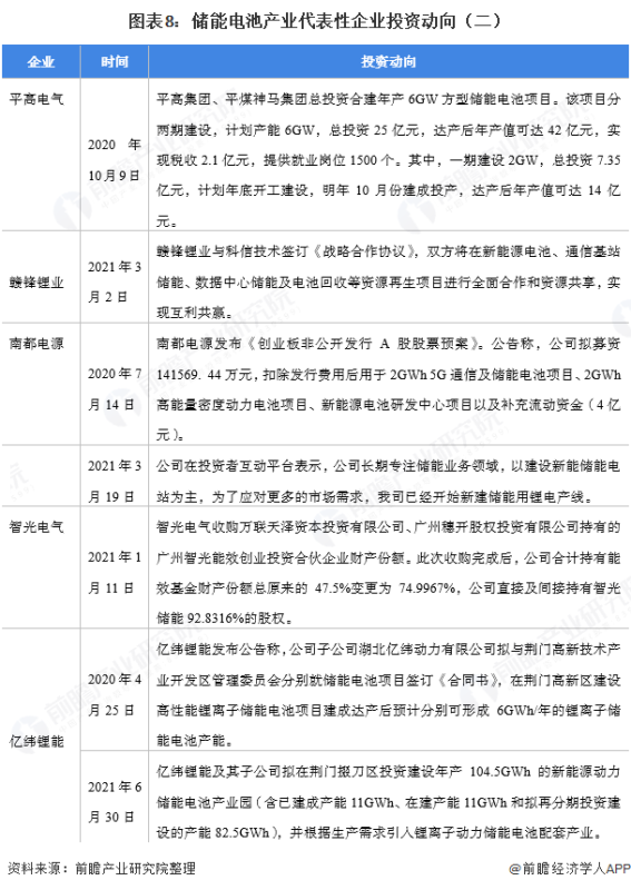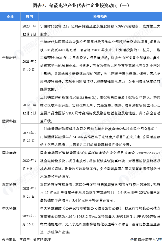 儲能電池產(chǎn)業(yè)代表性企業(yè)最新投資動向
