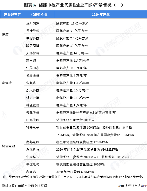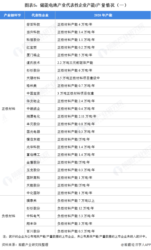 儲能電池產(chǎn)業(yè)代表性企業(yè)產(chǎn)能/產(chǎn)量情況