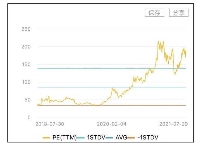 寧德時(shí)代市盈率變動(dòng)曲線(xiàn) 來(lái)源:萬(wàn)得股票