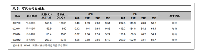 國(guó)信證券對(duì)寧德時(shí)代相關(guān)數(shù)據(jù)的預(yù)測(cè)