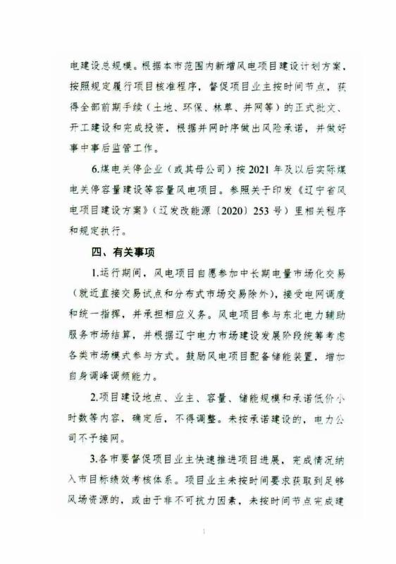 在風(fēng)電項目電價方面,《意見稿》明確項目年度保障利用小時(1850小時)按燃煤發(fā)電基準(zhǔn)價結(jié)算,超出部分延續(xù)《遼寧省風(fēng)電項目建設(shè)方案》(遼發(fā)改能源【2020】253號)政策執(zhí)行。