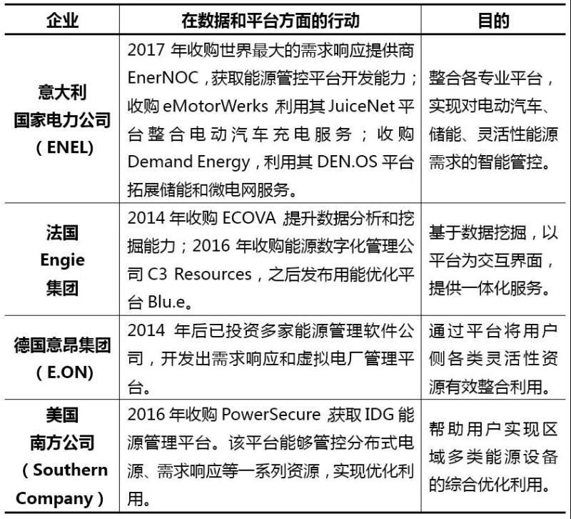 表3 國外大型能源電力企業(yè)在數(shù)據(jù)和平臺方面的行動