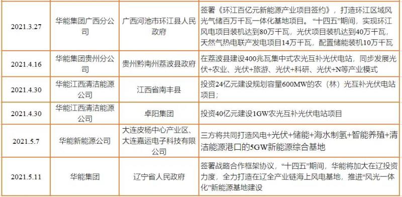 三、2021年上半年華能集團(tuán)與地方政府的部分簽約情況