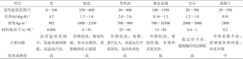 表1 顯熱儲(chǔ)熱材料特點(diǎn)