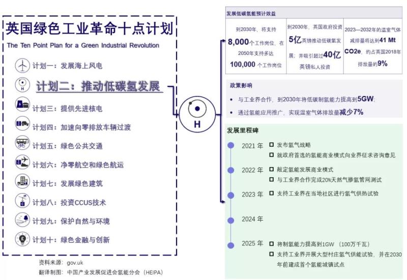 2020年11月,英國(guó)政府正式公布綠色工業(yè)革命十點(diǎn)計(jì)劃,其中計(jì)劃二“推動(dòng)低碳?xì)浒l(fā)展”無(wú)論投資拉動(dòng)作用還是減排效應(yīng)都受到廣泛關(guān)注,進(jìn)而帶動(dòng)了企業(yè)對(duì)氫能的投資熱情。近幾個(gè)月來,英國(guó)政府還宣布了一系列激勵(lì)措施來推動(dòng)投資,包括2.4億英鎊凈零氫基金和對(duì)“凈零航空委員會(huì)”('Jet Zero Council')的資助。