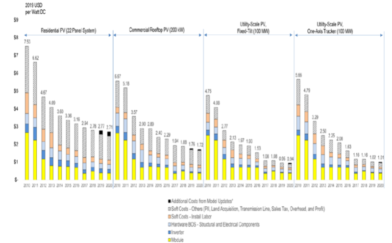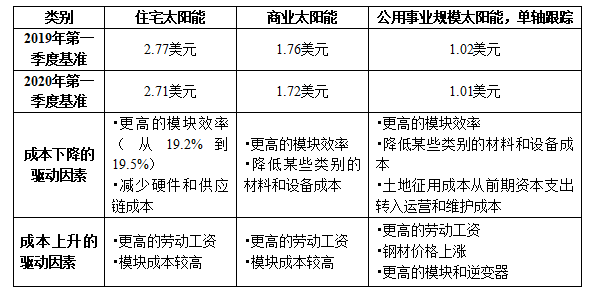 采用的基準(zhǔn)測試方法包括自下而上地計算安裝住宅、商業(yè)和公用事業(yè)規(guī)模太陽能發(fā)電系統(tǒng)時產(chǎn)生的系統(tǒng)和項目所有必要的開發(fā)成本,并對2019年第一季度和2020年第一季度的成本進(jìn)行了建模,其中并不包括任何先前的供應(yīng)協(xié)議或合同。