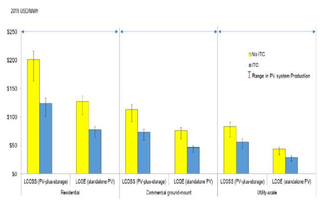 對于住宅太陽能+儲能系統(tǒng)來說,平準(zhǔn)化能源成本在沒有獲得聯(lián)邦稅收抵免(ITC)的情況下為201美元/MWh,在獲得30%聯(lián)邦稅收抵免(ITC)的情況下為124美元/MWh。對于商業(yè)太陽能+儲能系統(tǒng),在沒有獲得聯(lián)邦稅收抵免(ITC)的情況下為113美元/MWh,在獲得30%聯(lián)邦稅收抵免(ITC)情況下為73美元/MWh。對于公用事業(yè)規(guī)模的太陽能+儲能系統(tǒng),在沒有獲得聯(lián)邦稅收抵免(ITC)情況下為83美元/MWh,在獲得30%聯(lián)邦稅收抵免(ITC)的情況下為57美元/MWh。(未完待續(xù),嚴(yán)禁轉(zhuǎn)載)