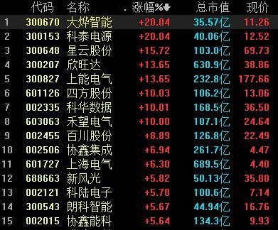 8月10日,儲能概念股持續(xù)走強,大燁智能、科泰電源、四方股份、科華數(shù)據(jù)等多股漲停,上能電氣、星云股份、新風光、百川股份等紛紛大漲。