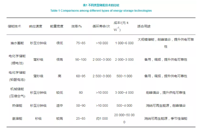 不同類型的儲(chǔ)能在響應(yīng)速度、能量密度、效率、壽命、經(jīng)濟(jì)成本、潛在應(yīng)用上有所差異,歸納如表1。儲(chǔ)能依靠其物理特性,在電力系統(tǒng)中具備諸多潛在價(jià)值,可在市場(chǎng)上提供相應(yīng)的標(biāo)的。