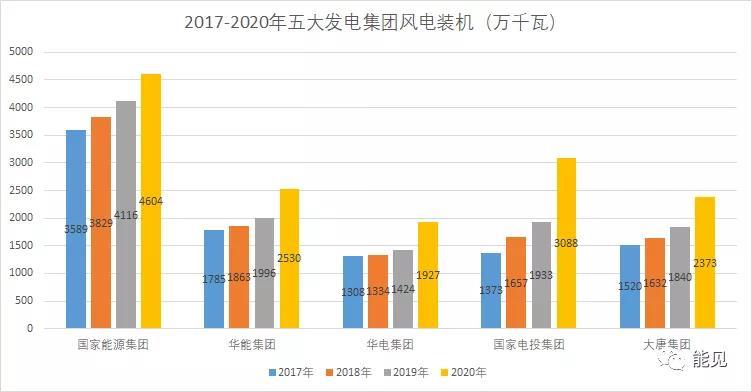 在風(fēng)電裝機(jī)方面,五大發(fā)電集團(tuán)都較為重視,但重視程度不同。國(guó)家能源集團(tuán)因?yàn)槠煜慢堅(jiān)措娏κ侵袊?guó)最早的風(fēng)電開發(fā)商之一,所以一直處于龍頭地位,但是國(guó)家能源集團(tuán)并未穩(wěn)固這種優(yōu)勢(shì),國(guó)家電投集團(tuán)去年迅速發(fā)力,兩家之間在風(fēng)電裝機(jī)上的差距越來(lái)越小。