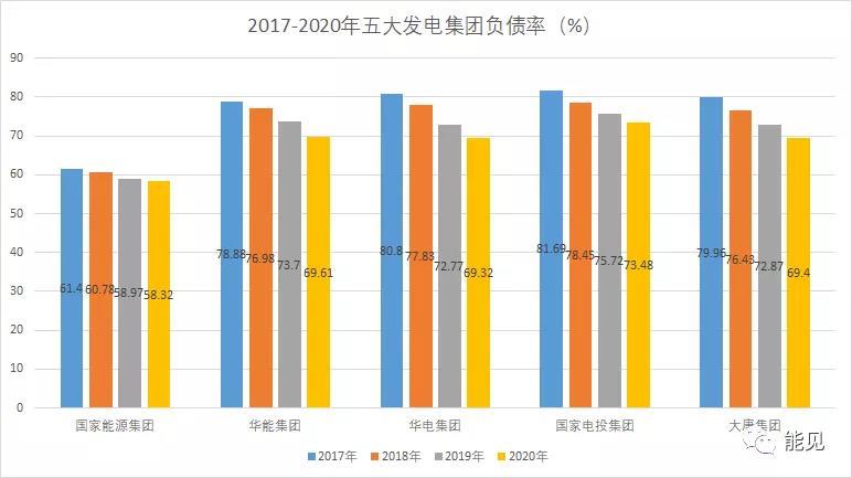 負(fù)債率持續(xù)下降得益于國(guó)家的宏觀管控。從2017年開始,國(guó)資委制定了全面推進(jìn)中央企業(yè)降杠桿減負(fù)債防風(fēng)險(xiǎn)工作。2018年9月,中辦、國(guó)辦印發(fā)意見,對(duì)國(guó)有企業(yè)降杠桿提出了總體要求,明確要求國(guó)有企業(yè)平均資產(chǎn)負(fù)債率到2020年末比2017年末降低2個(gè)百分點(diǎn)左右。截至2020年末,中央企業(yè)平均資產(chǎn)負(fù)債率為64.5%,實(shí)現(xiàn)了“2020年末中央企業(yè)平均資產(chǎn)負(fù)債不高于64.7%”的目標(biāo)任務(wù)。五大發(fā)電集團(tuán)也相應(yīng)完成了任務(wù)。