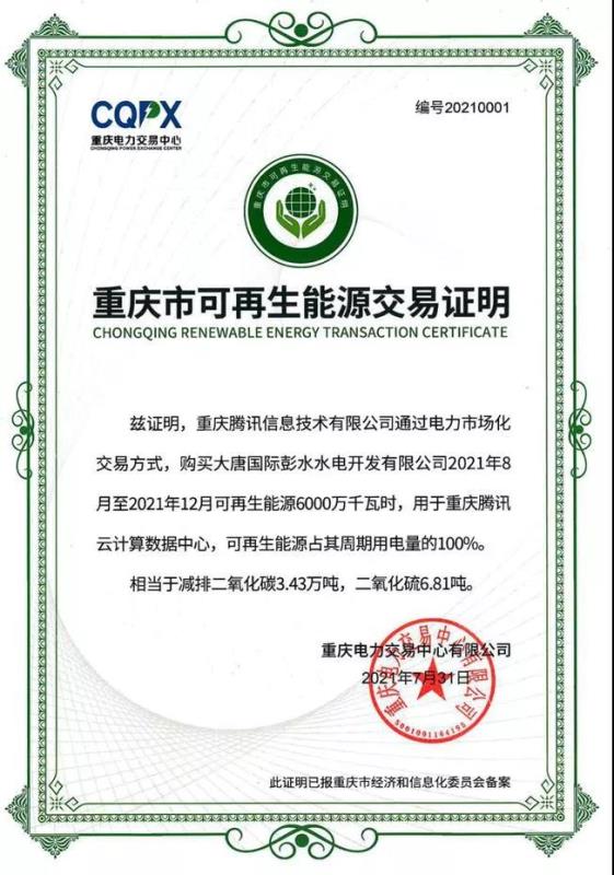 根據(jù)測算,這一舉措僅本年內(nèi)就可減排二氧化碳3.43萬噸,二氧化硫6.81噸。同時,雙方還將加強分布式清潔能源管理、樓宇用能優(yōu)化等方面的探索,進一步推動重慶騰訊云計算數(shù)據(jù)中心實現(xiàn)全面碳中和。