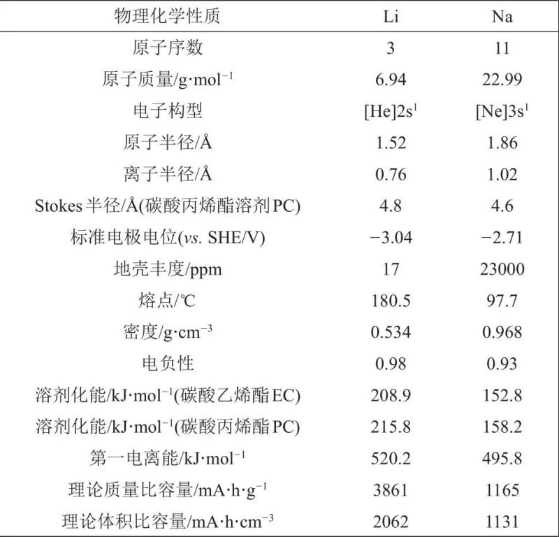 表1 鋰與鈉的物理化學(xué)性質(zhì)對(duì)比
