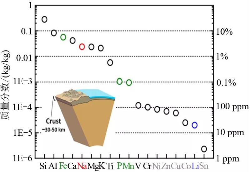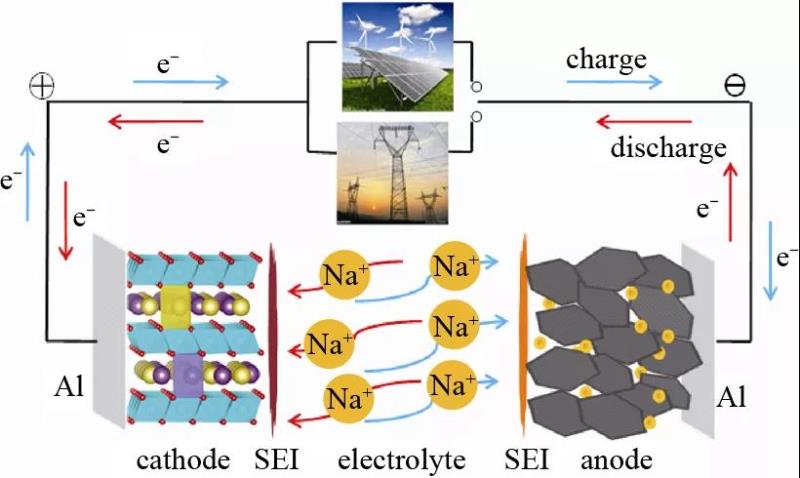 眾所周知,元素周期表中鈉與鋰是處于同一主族且具有相似物理化學(xué)性質(zhì)的金屬元素,地球上鈉資源儲(chǔ)量非常豐富,元素含量約為23000 ppm,豐度位于第6位(圖1),且鈉分布于全球各地,可完全不受資源和地域的限制,所以在資源方面,鈉離子電池比鋰離子電池具有更大的優(yōu)勢(shì)。此外,鈉離子與鋰離子在電池體系中具有類似的脫/嵌機(jī)制(圖3),對(duì)鈉離子電池的研究與開發(fā)可緩解由鋰資源短缺引發(fā)的新能源電池發(fā)展受限的問題。雖然在能量密度等方面與目前的鋰離子電池相比還存在差距,然而在低速電動(dòng)車和儲(chǔ)能應(yīng)用中成本和壽命是比能量密度更重要的指標(biāo),由此可以判斷,鈉離子電池將在低速電動(dòng)車、大規(guī)模電力儲(chǔ)能、5G通信基站、數(shù)據(jù)中心等應(yīng)用領(lǐng)域擁有比鋰離子電池更大的市場(chǎng)競(jìng)爭(zhēng)優(yōu)勢(shì)。