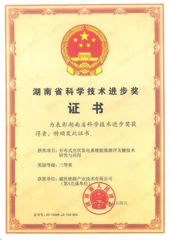 威勝已積聚了一大批行業(yè)專家,深入研究與應(yīng)用近十年,擁有豐富的研發(fā)和生產(chǎn)經(jīng)驗(yàn),分布式光伏榮獲國家科技進(jìn)步三等獎、湘潭市科學(xué)技術(shù)進(jìn)步一等獎;多個產(chǎn)品榮獲國家新產(chǎn)品稱號、湖南省新產(chǎn)品(新技術(shù))鑒定證書和新產(chǎn)品證書;擁有多項(xiàng)湖南省科技成果獎、多項(xiàng)專利與發(fā)明。