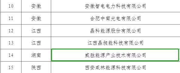 8月12日,國家工信部網(wǎng)站公示了國家級第二批智能光伏示范試點(diǎn)名單,威勝能源產(chǎn)業(yè)技術(shù)有限公司獲得推薦,成為湖南省首家也是唯一一家入選企業(yè)。以下為公示文件: