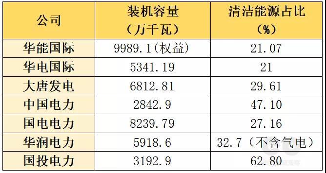 2021年上半年主要發(fā)電央企上市公司裝機容量