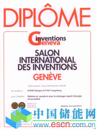 中國儲能網(wǎng)訊:在2014年4月2~6日舉行的第42屆瑞士日內(nèi)瓦國際發(fā)明博覽會上,清華大學(xué)王保國教授課題組的科研成果“大規(guī)模蓄電儲能的全釩液流電池技術(shù)與裝備” 獲展覽會特別金獎。日內(nèi)瓦國際發(fā)明展創(chuàng)辦于1973年,是世界上舉辦歷史最長、規(guī)模最大的發(fā)明展。本屆發(fā)明展的參觀人數(shù)達(dá)到6萬人,共評出65項特別金獎。全釩液流電池是一種適用于風(fēng)能、太陽能等可再生能源發(fā)電過程的大容量蓄電儲能裝備,能夠克服風(fēng)能、太陽能發(fā)電的不穩(wěn)定、不連續(xù)的缺陷。利用該研究成果已經(jīng)開發(fā)成功5 kW、10 kW兩種規(guī)格的電堆,能量效率超過73%,進(jìn)入批量試制階段。該電池具有容量大、壽命長、效率高、成本低、安全可靠的特點。清華大學(xué)的研究成果采用自主創(chuàng)新的質(zhì)子傳導(dǎo)膜、電解液、電堆設(shè)計與制造技術(shù),在電池性能與性價比方面十分具有競爭力。本次在日內(nèi)瓦國際發(fā)明展覽會獲獎,是我國全釩液流電池儲能裝備與技術(shù)在國際上首次獲得大型獎項,對我國儲能技術(shù)與產(chǎn)品在國際上得到認(rèn)可具有里程碑意義。
