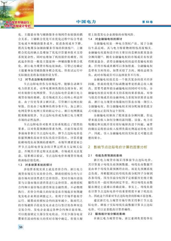 摘要:作為有代表性的省級市場,浙江電力現貨市場在建設和運行中遇到了若干挑戰(zhàn)。首先,對浙江電力現貨市場的特點進行分析;其次,對影響節(jié)點邊際電價計算準確性的因素進行研究和討論,并提出相應的改進措施;最后,結合調度運行經驗,從市場設計和運行機制2個層面,對省級電力現貨市場建設提出技術建議,以期推動省級電力現貨市場的平穩(wěn)有序發(fā)展。