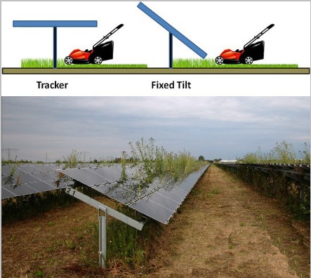 因設計不當,導致光伏電站運營后無法除草,雜草遮蓋了光伏組件