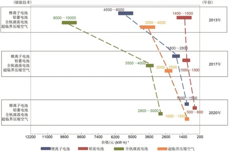 圖10 主要儲能技術(shù)的價格變化趨勢