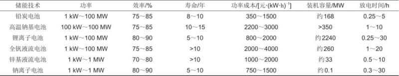 表4 主要化學(xué)儲能技術(shù)關(guān)鍵參數(shù)
