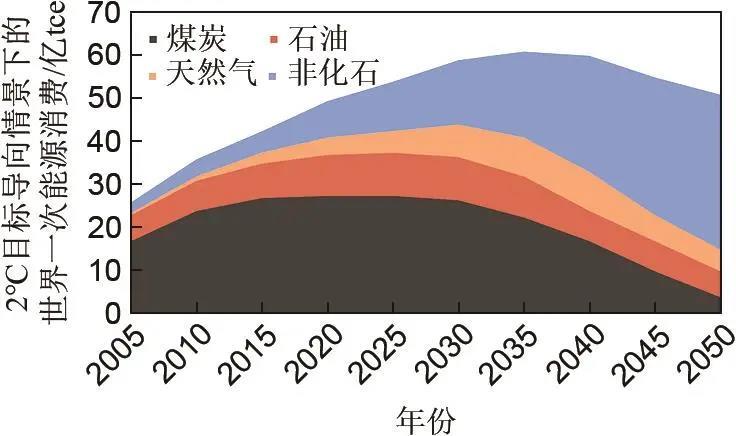 圖3 世界一次能源消費構(gòu)成(2 ℃目標(biāo)導(dǎo)向推薦情景)
