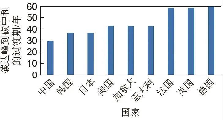 圖1 世界主要國家碳達(dá)峰到碳中和的過渡期