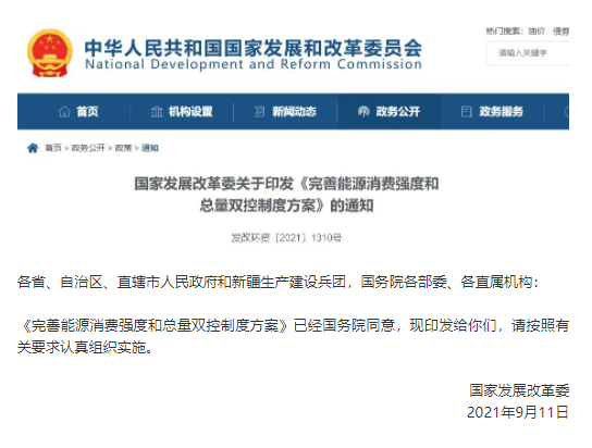 中國(guó)儲(chǔ)能網(wǎng)訊:國(guó)家發(fā)改委近日印發(fā)《完善能源消費(fèi)強(qiáng)度和總量雙控制度方案》。