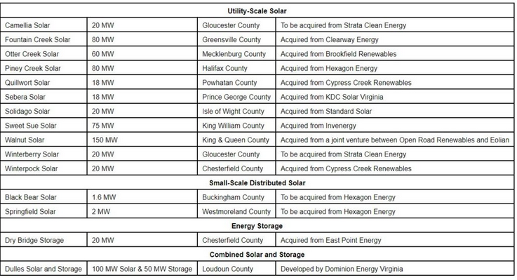 中國儲能網(wǎng)訊:據(jù)外媒報道,美國公用事業(yè)廠商Dominion Energy Virginia公司日前表示,已經(jīng)簽署了15個新能源項目的合同和32個第三方電力采購協(xié)議(PPA),其總裝機容量為1GW。Dominion Energy公司聲稱這是向弗吉尼亞州公司委員會提交的規(guī)模最大的清潔能源項目(SCC)組合。