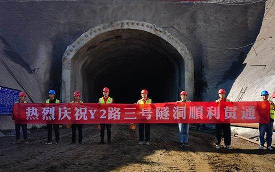 Y2道路3號(hào)隧道是尚義抽水蓄能電站Y2號(hào)場(chǎng)內(nèi)道路工程重要工程之一,隧道全長(zhǎng)155米,隧道形式為單洞雙向雙車(chē)道;其主要功能為施工期間的物質(zhì)運(yùn)輸及運(yùn)營(yíng)管理期間內(nèi)部車(chē)輛的通行。施工中,水電四局進(jìn)一步加強(qiáng)現(xiàn)場(chǎng)管理,組織進(jìn)行技術(shù)攻關(guān),積極優(yōu)化施工方案,因地制宜采用高效、綠色、安全施工手段,有序推進(jìn)了隧道掘進(jìn),順利實(shí)現(xiàn)工期節(jié)點(diǎn)目標(biāo),保證了隧道如期貫通。