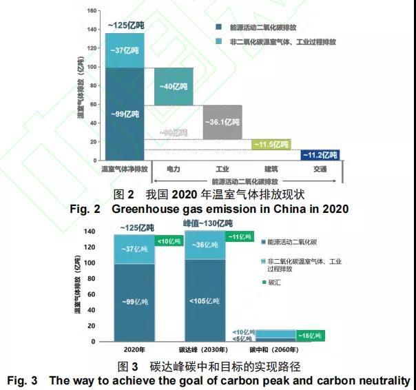 中國 21 世紀議程管理中心研究,預計我國將于“十五五”初期實現(xiàn)碳達峰,溫室氣體排放峰值不超過 130 億噸,能源活動二氧化碳排放峰值不超過 105 億噸,碳匯約 9 億噸;2060 年實現(xiàn)碳中和時,我國的溫室氣體排放量不超過 15 億噸,碳匯約 15 億噸,其中,能源活動二氧化碳排放量約 5 億噸,如圖 3 所示。