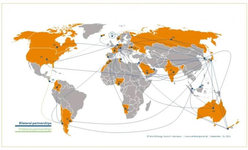 世界能源理事會(World Energy Council)的數(shù)據(jù)顯示,全球氫合作伙伴的數(shù)量正在增加,并可能進一步增加。該組織統(tǒng)計了自2017年以來全球建立的41個低碳或零碳氫的進出口合作伙伴關(guān)系,其中大多數(shù)是在過去兩年中建立的。可能成為氫的凈進口國的幾個國家如德國、日本和韓國建立了大量的政府間氫能合作關(guān)系,德國和日本與其他國家建立的伙伴關(guān)系最多,分別有13個和9個。澳大利亞、智利和沙特阿拉伯等希望從氫出口中獲得經(jīng)濟利益并建立氫經(jīng)濟的國家,在國際上也越來越積極地尋找合作伙伴來建立氫合作。